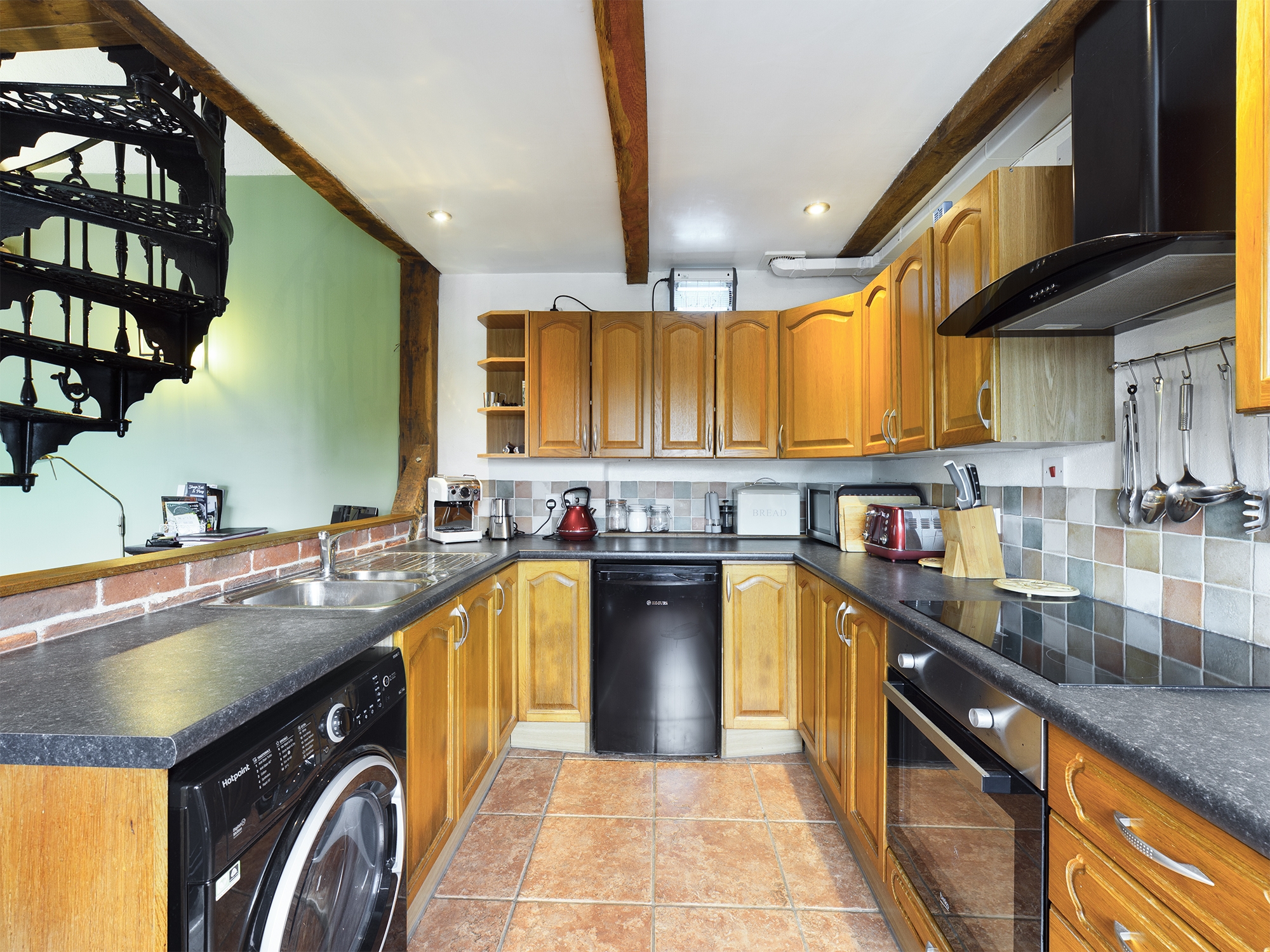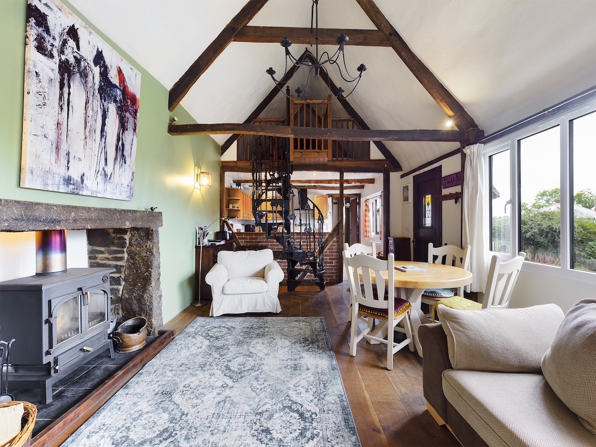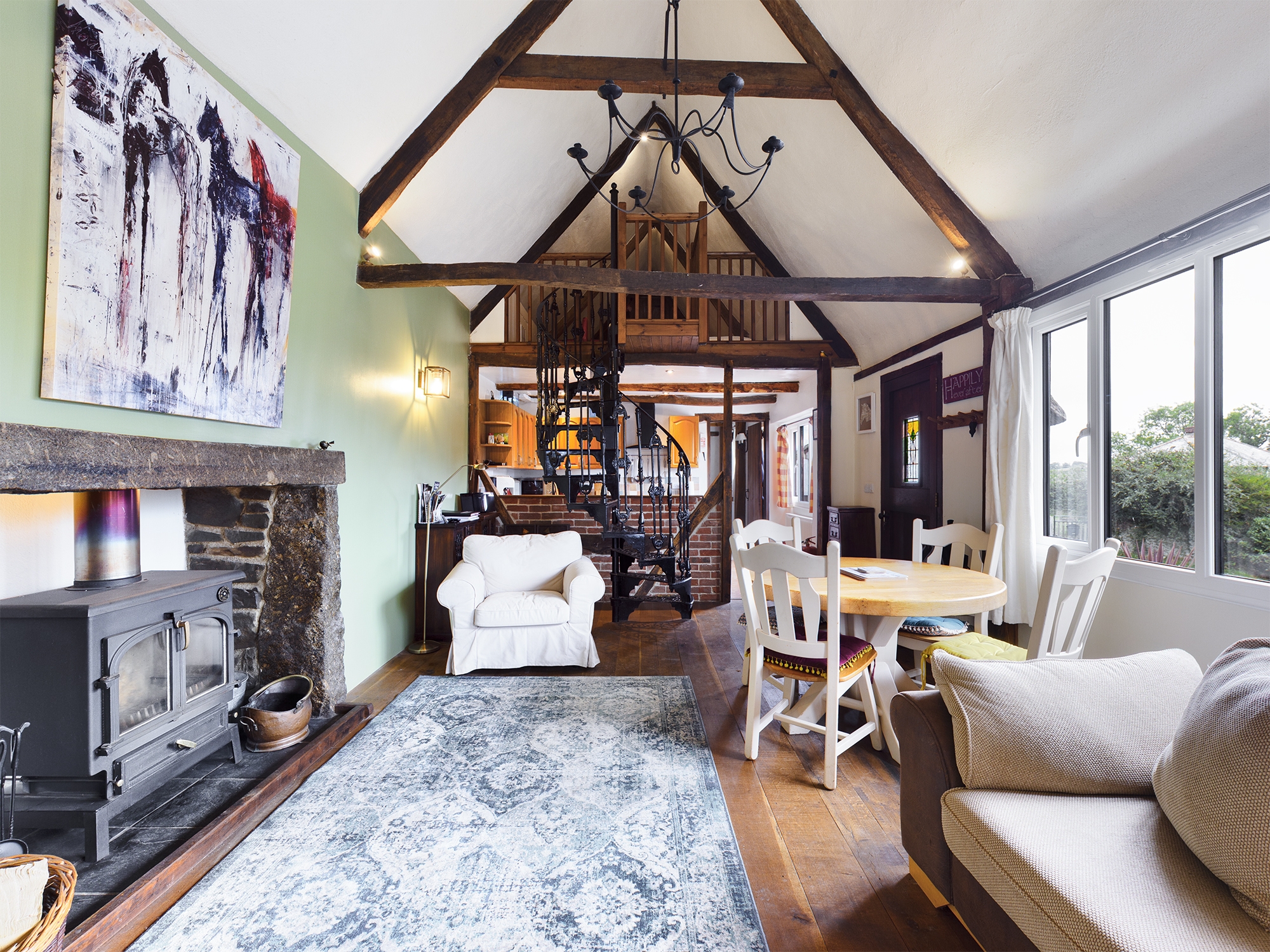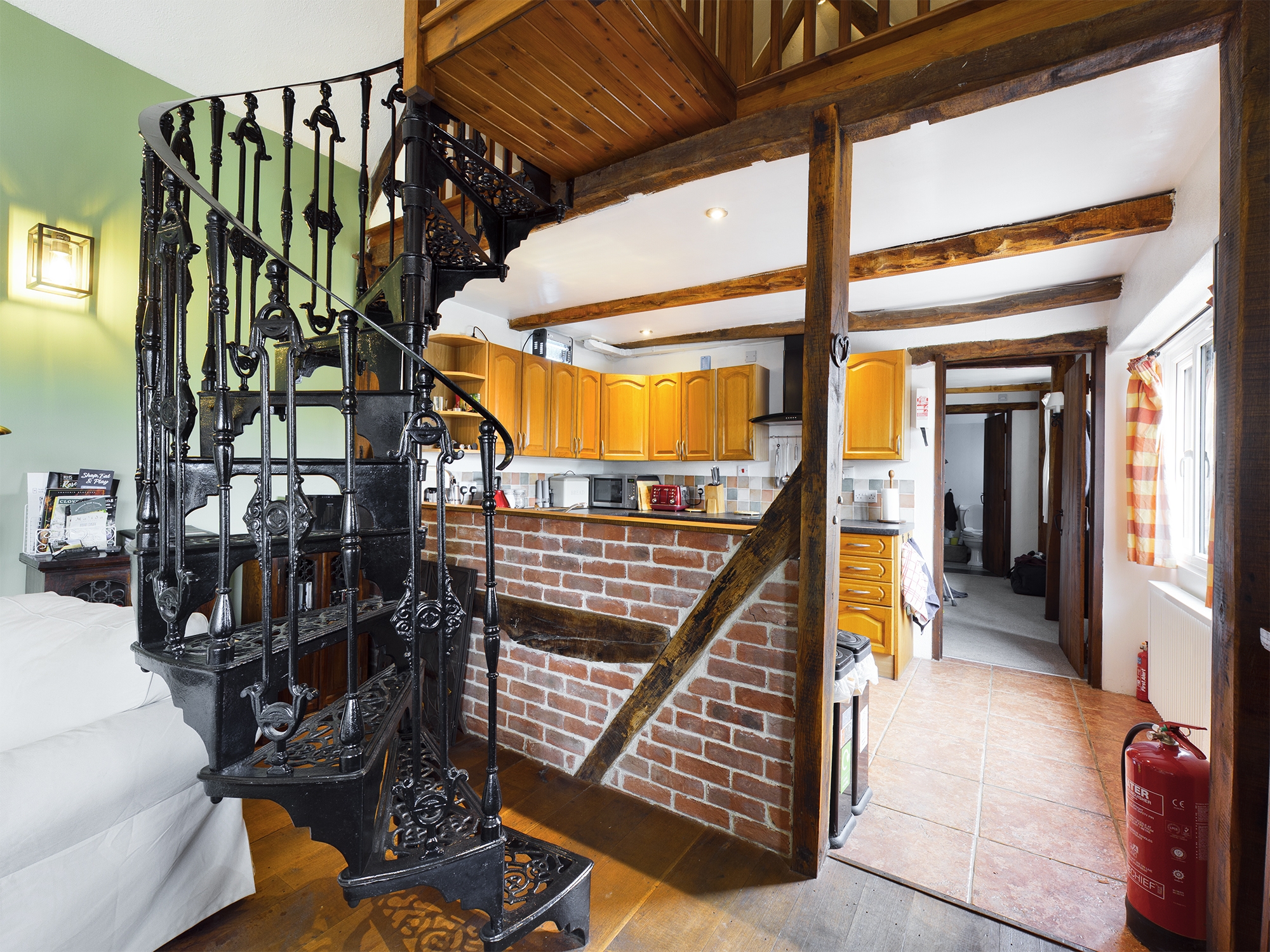 The main accommodation is largely on one single level with one room leading through to another however there is also a spiral staircase to a charming mezzanine area in the eaves. We have put two futon beds up there to create a relaxed space or as a bedroom for children.